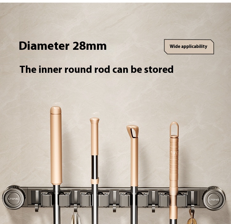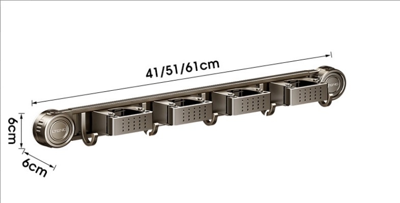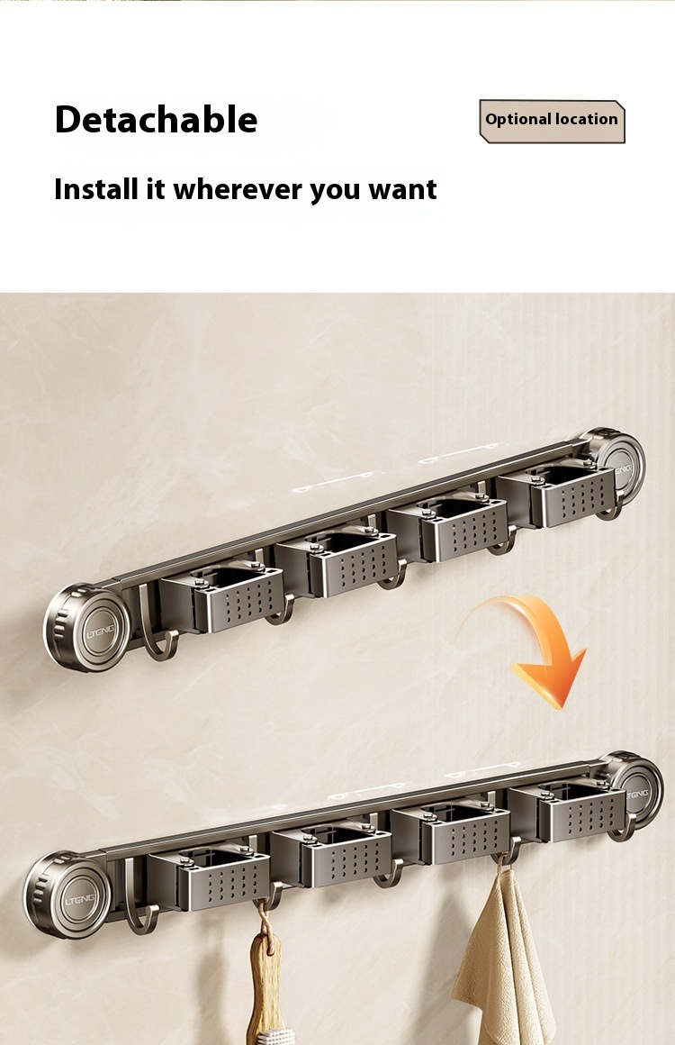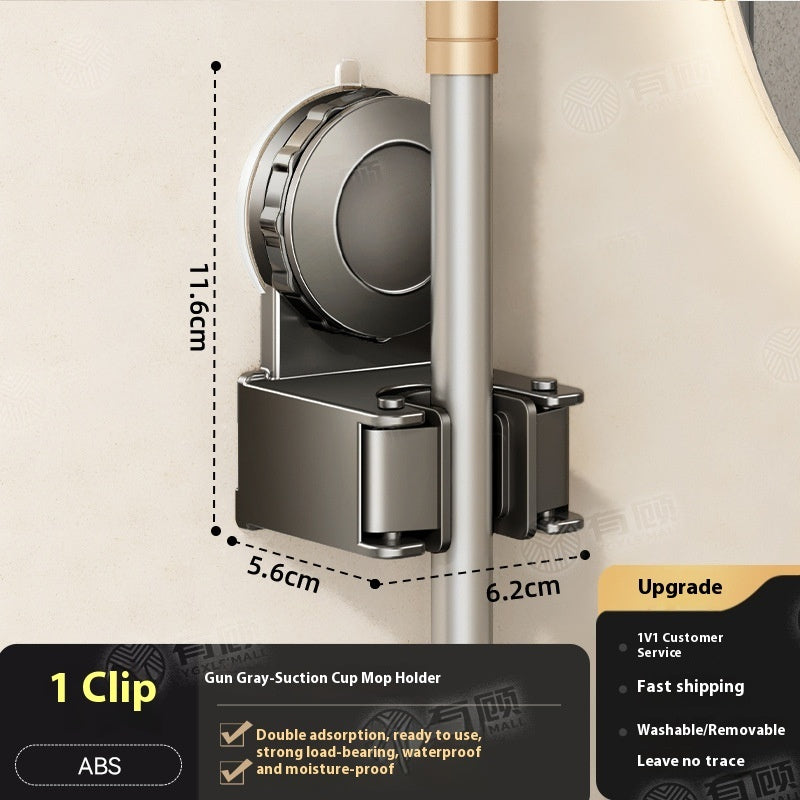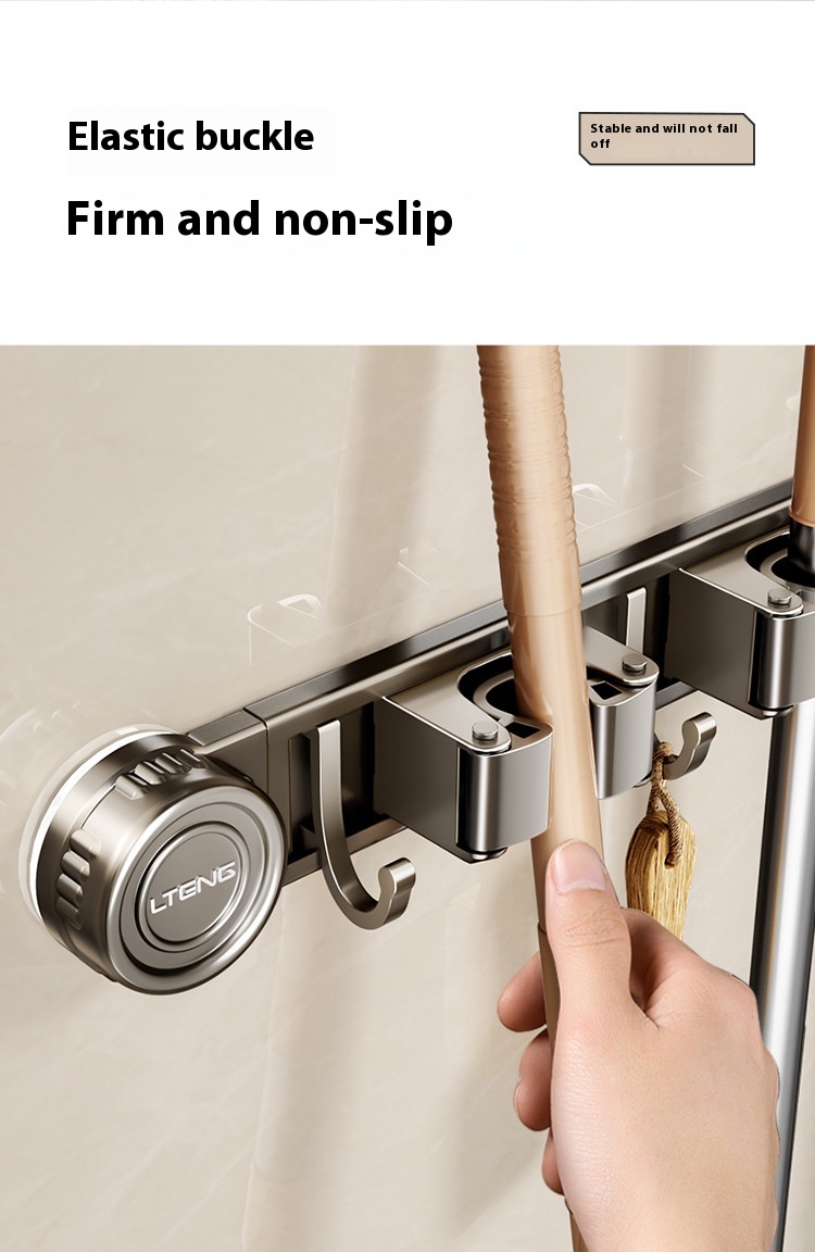 Product information: Treatment Process: oxidation Specifications: gun gray sucker mop rack, gun gray sucker mop rack 2 clips 3 hooks, gun gray sucker mop rack 3 clips 4 hooks, gun gray sucker mop rack 4 clips 5 hooks Material: alumimum ABS Style: light luxury