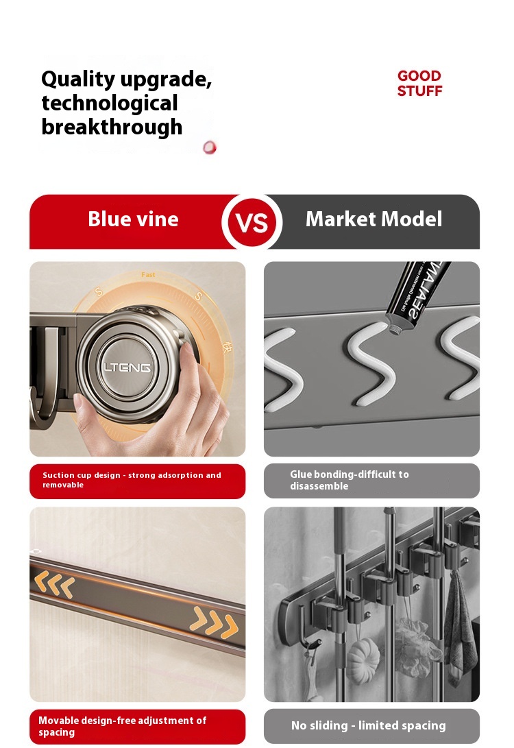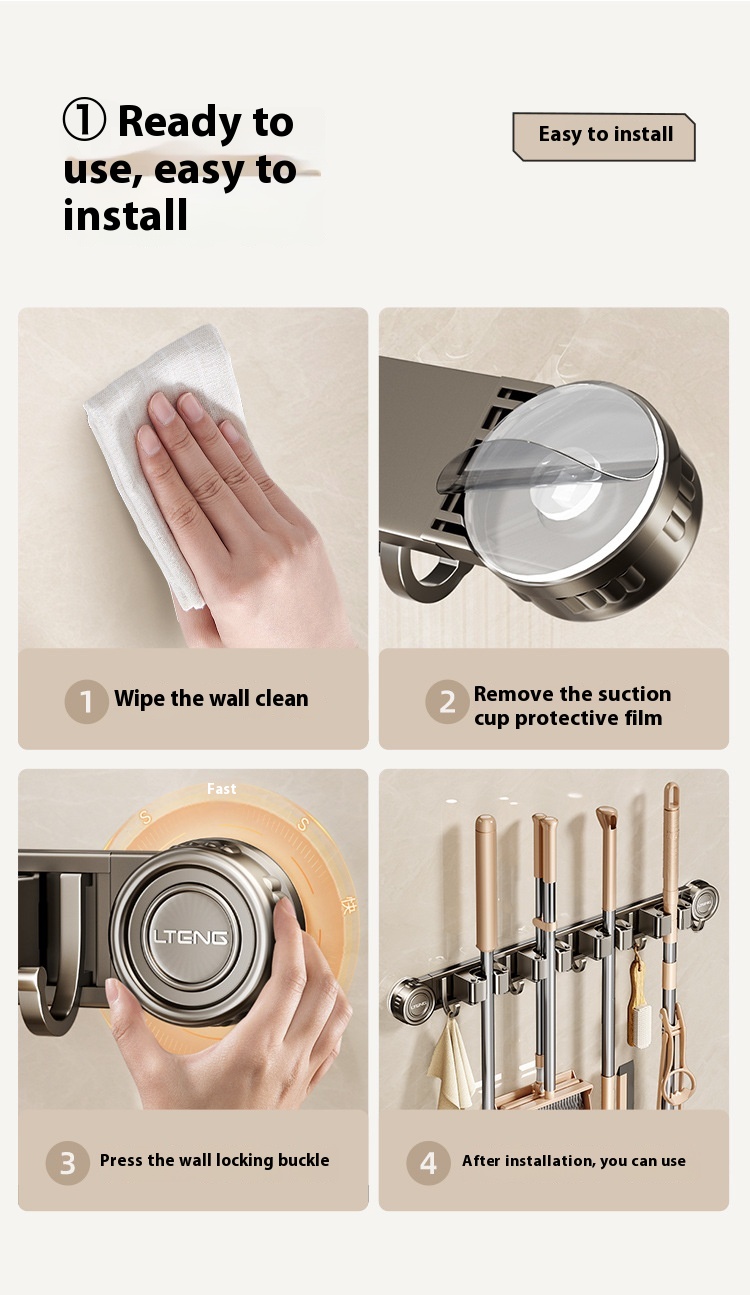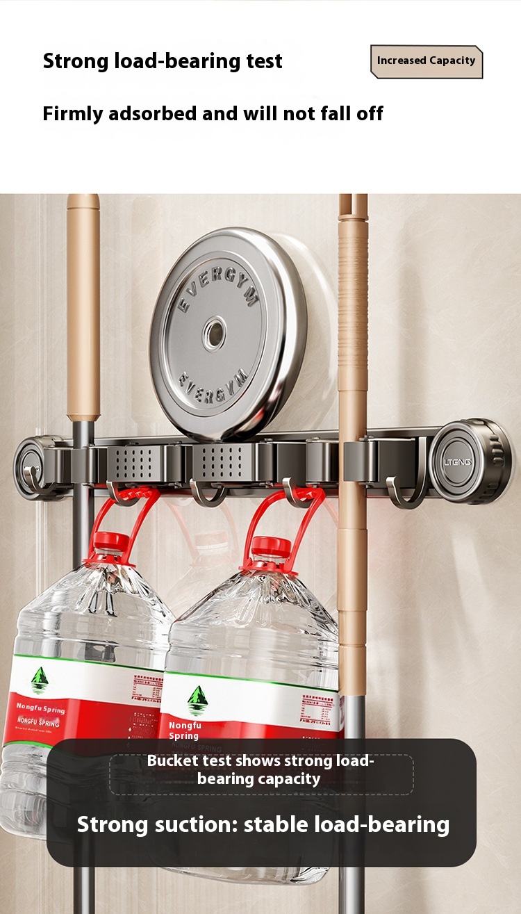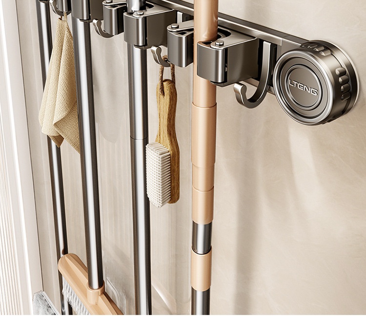 Product information: Treatment Process: oxidation Specifications: gun gray sucker mop rack, gun gray sucker mop rack 2 clips 3 hooks, gun gray sucker mop rack 3 clips 4 hooks, gun gray sucker mop rack 4 clips 5 hooks Material: alumimum ABS Style: light luxury